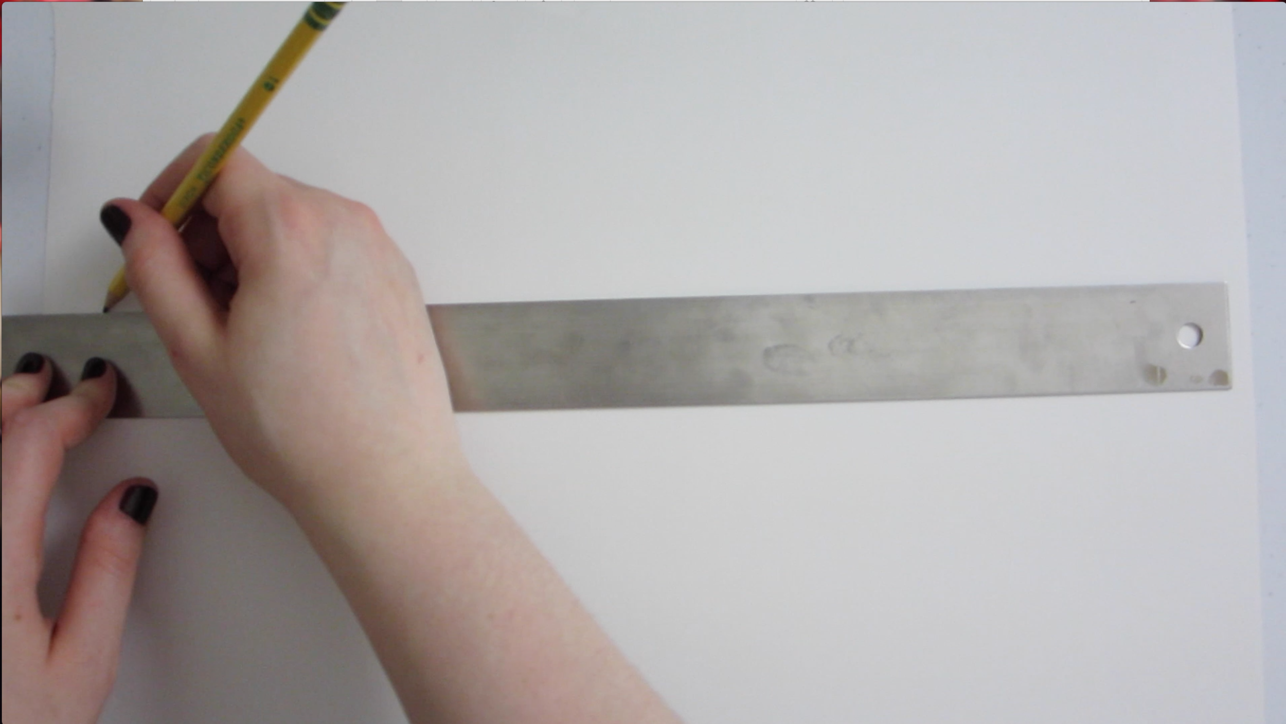 Line up your T-Square with the edge of your table and make sure you always hold it firmly against the edge of the table to ensure all your horizontal lines will be perfectly parallel. Draw a horizontal line at about the center of the page. This line will be your eye level or horizon line.